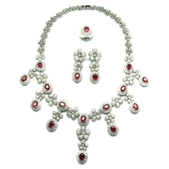 This pair of earrings is made of diamonds and sapphires. The 2 ends of the each earring are in teardrop shape with diamonds and sapphires in pavé setting. They are made of 18K white gold and is not easy to trigger allegy for the wearers.
