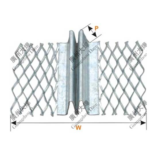 This silvery drywall angle bead features a mesh design. It is used to cover the outside corners of plastered or drywalled walls. The angle bead boasts robust construction and exceptional durability.