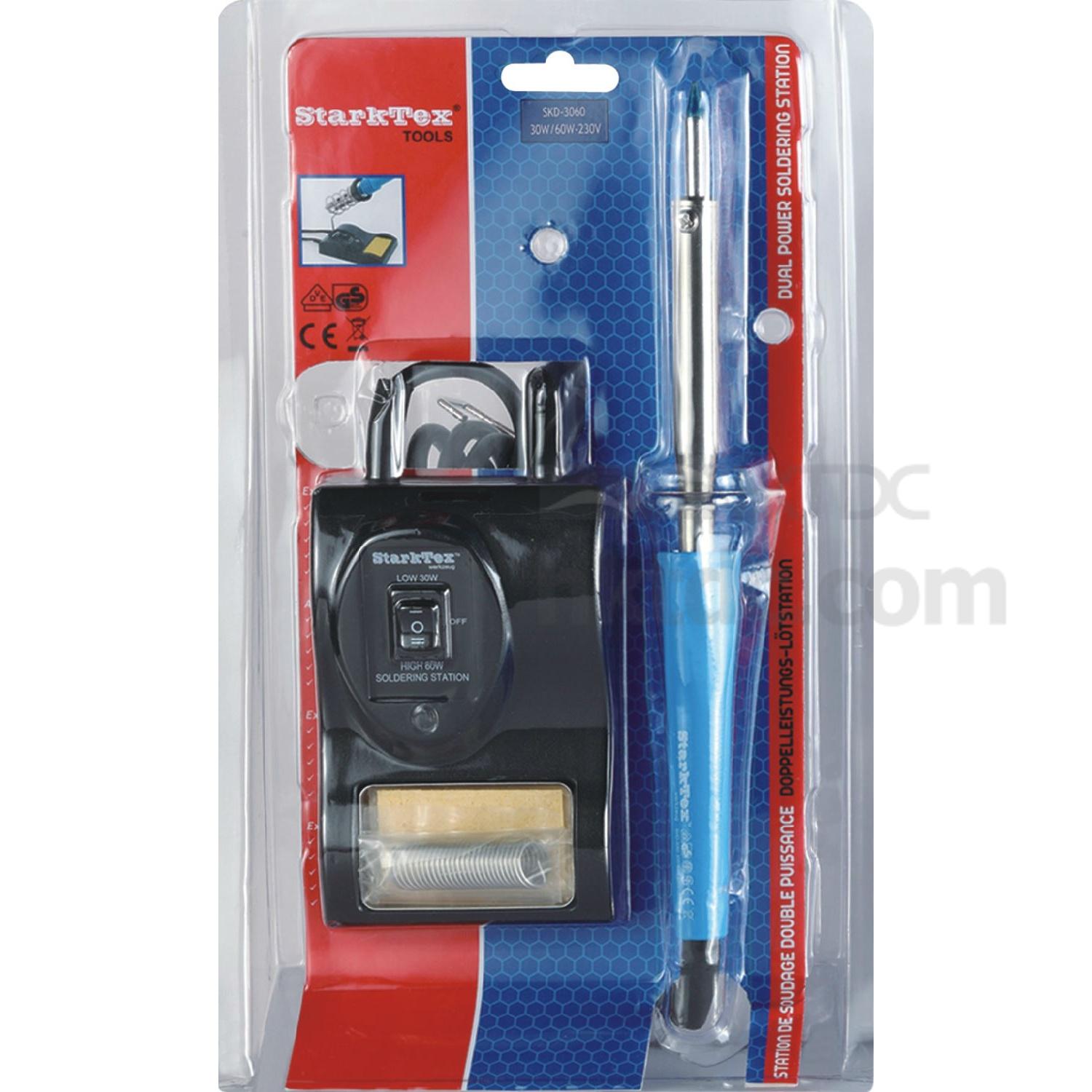 Accomplish different soldering tasks with this high-performance dual wattage soldering station. Excellent for most electronic projects, the station features dual power settings for performing both low and high power soldering on printed circuit boards or large terminals.