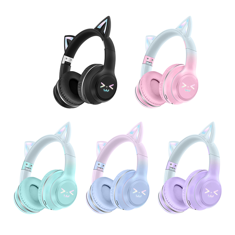 EEB9061B Colorful Cute Cat Ear Wireless Bluetooth Headphone With LED