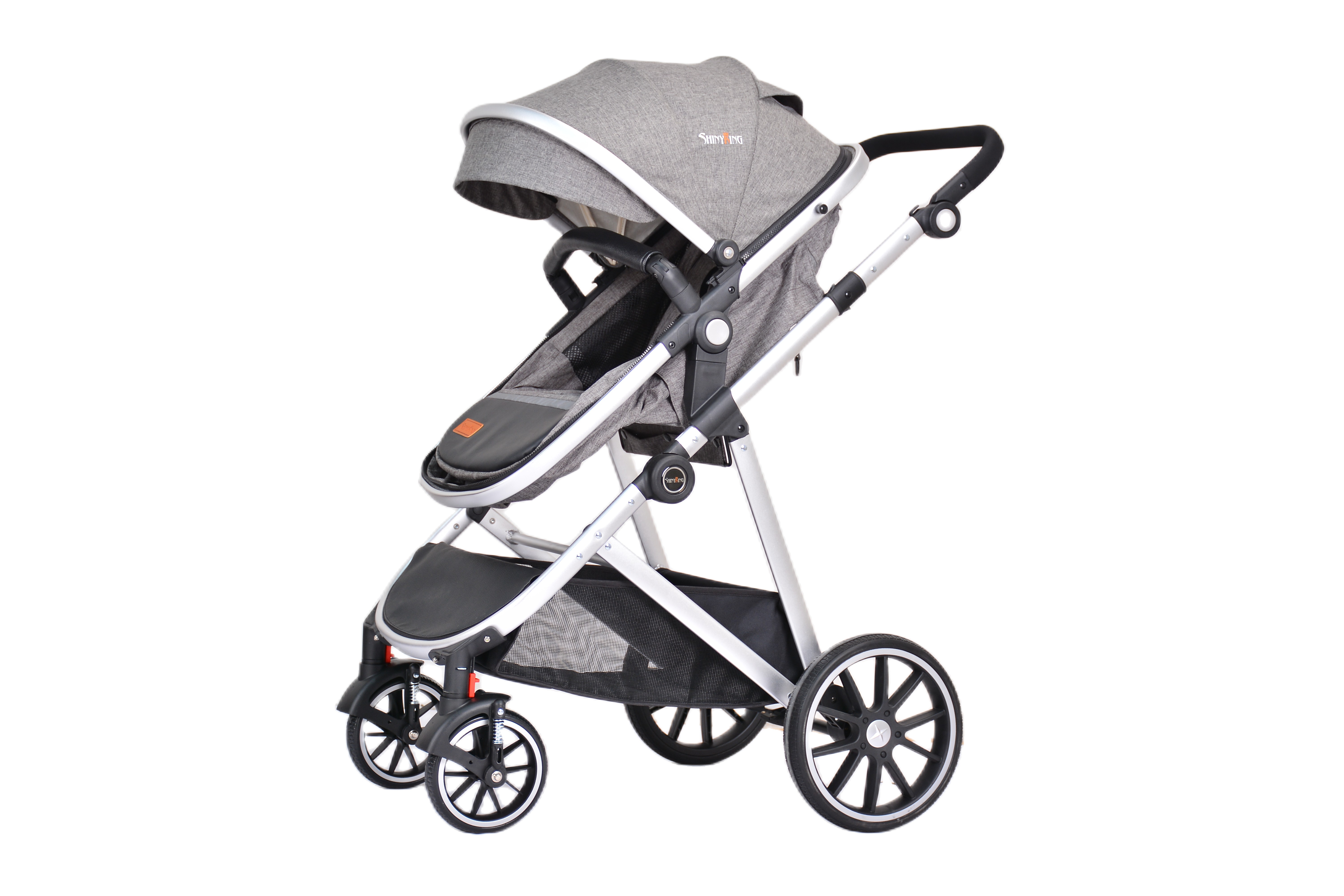 Features: convertible bassinet, adjustable PU handle, cloth handle bar, PU footrest, quilting foot cover, cup holder, wrist safety