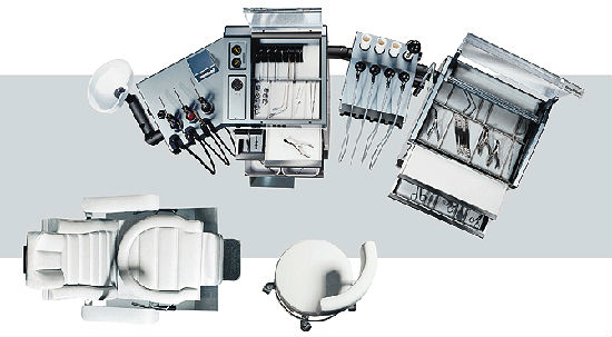 Consists of compressed air, suction, and 38°C ear rinsing unit,