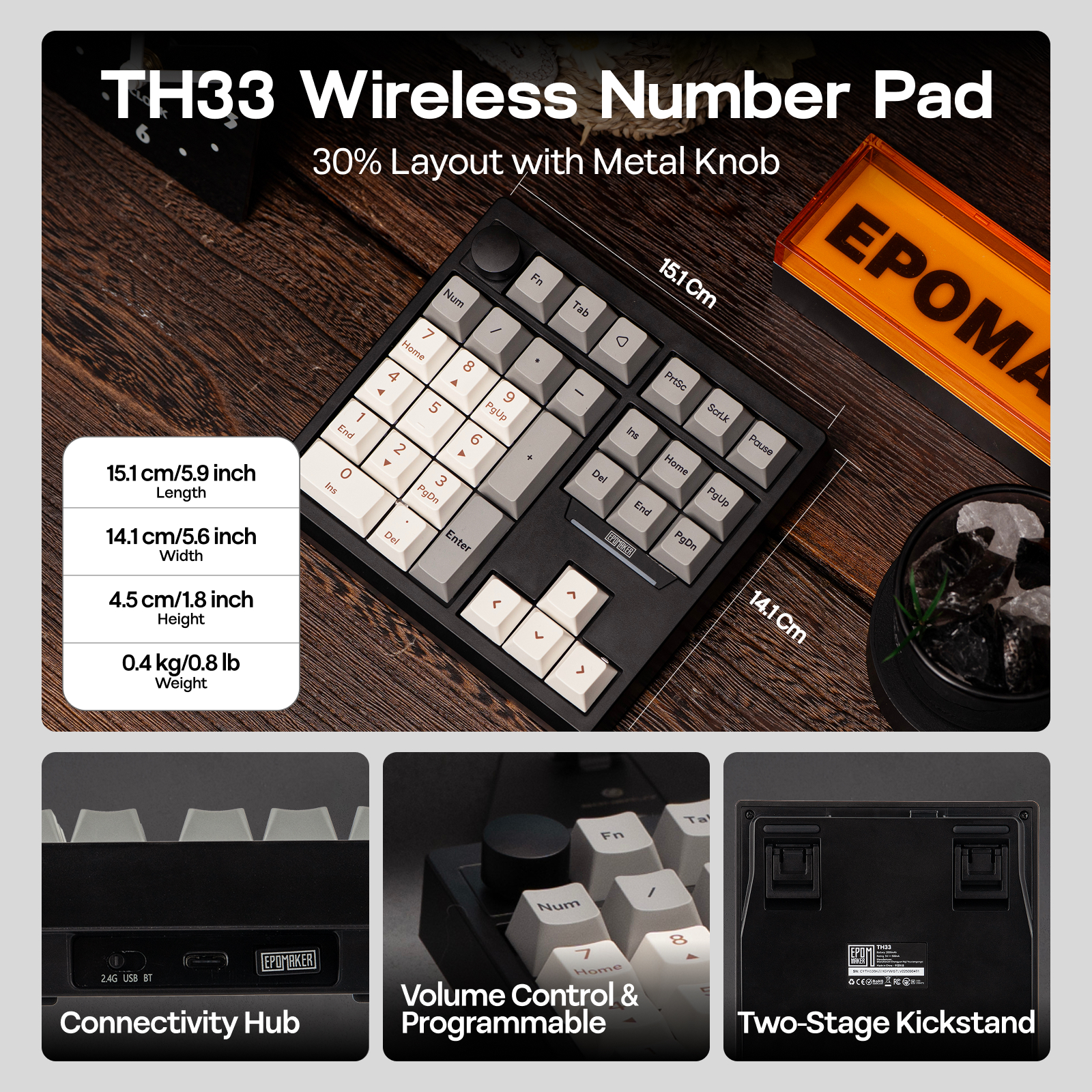 Elevate your efficiency with the TH33 numpad, your ultimate desktop companion.Swiftly balancing spreadsheets or quickly checking figures mid-game, the TH33 keyboard features essential keys like the Delete, Home, END, INS, PS, PGUP, PGDN and etc. for productive gaming and work.