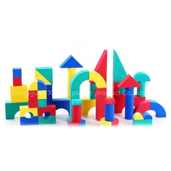 This building block set includes building blocks in assorted shapes and colors. It is a great educational toy to encourage creativity and develop imagination of children. The eco-friendly building blocks are made of safe and durable EVA material.