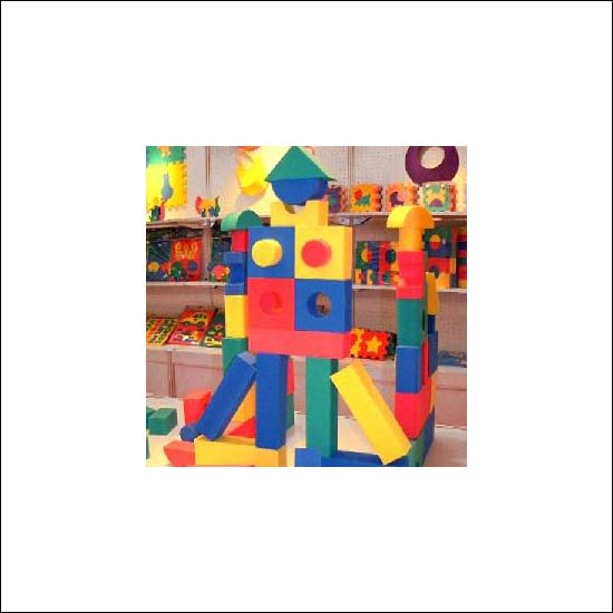 Colorful cub, rectangualr blocks and circular tubes are some of the items of EVA building block