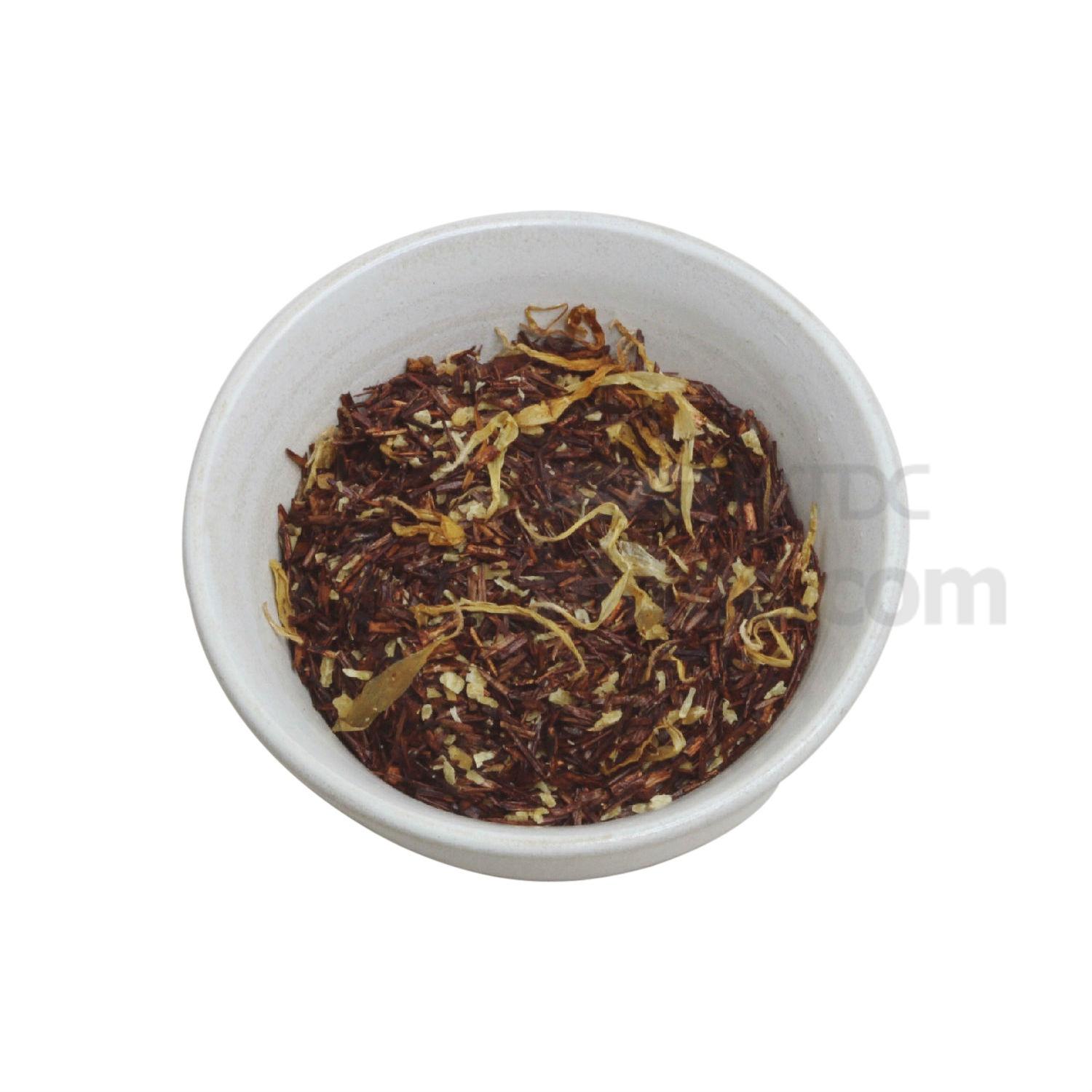 Ingredients: Organic rooibos, orange peel, marigold, coconut, flavour.