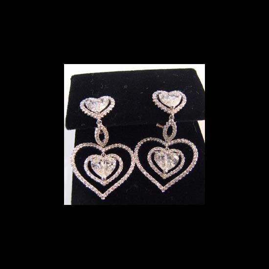 Each earring consists of 2 open hearts with a suspended gemstone inside