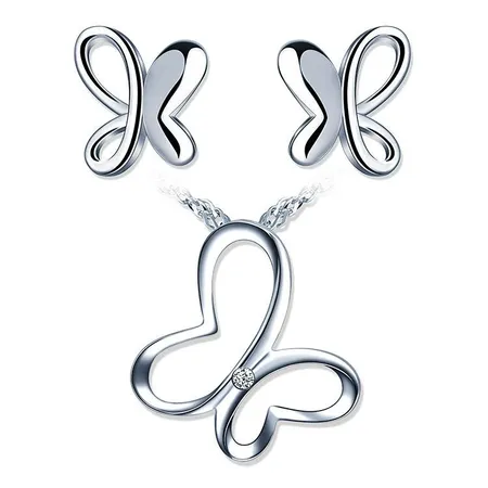 Featuring an abstract butterfly motif in smooth, curving lines, this matching Butterfly Earring and Necklace Set captures the essence of femininity, nature and timeless elegance. The necklace showcases an openwork butterfly charm polished to a high shine, accented with a small round stone at its center for added appeal. This versatile jewelry set complements both casual and dressy outfits and is a popular choice for gifting on anniversaries, birthdays, or as a representation of love and new beginnings.