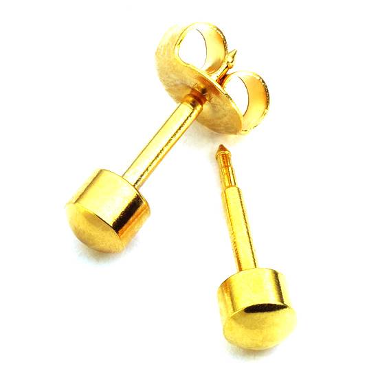 This is a pair of earrings made/plated with golden metals and are equipped with golden earring studs.