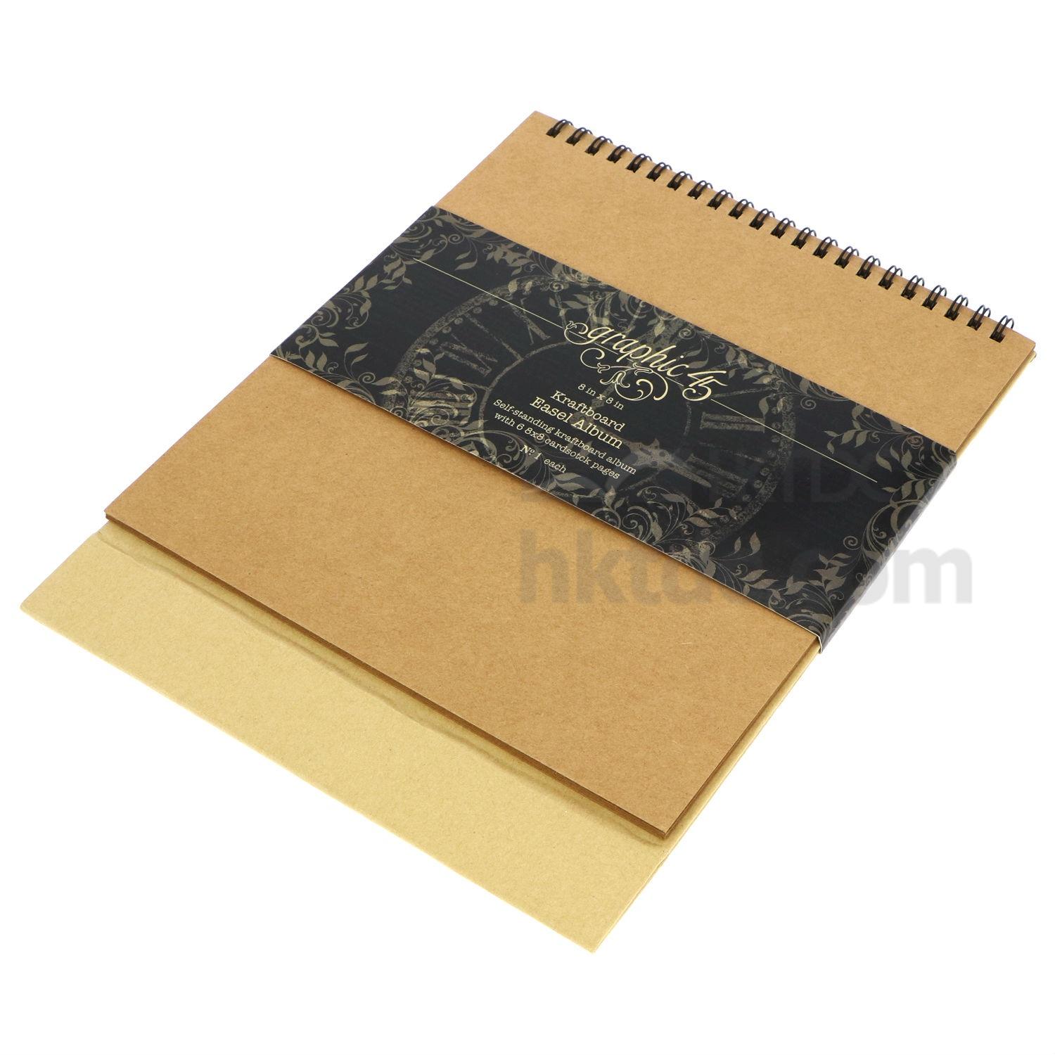 This kraft board album can stand on its own like an easel and comes with 6 8x8 cardstock pages. It is rectangular shaped and has wired binding on top. The easel album is can be used as a photo album and is great for decoration and gifting use.
