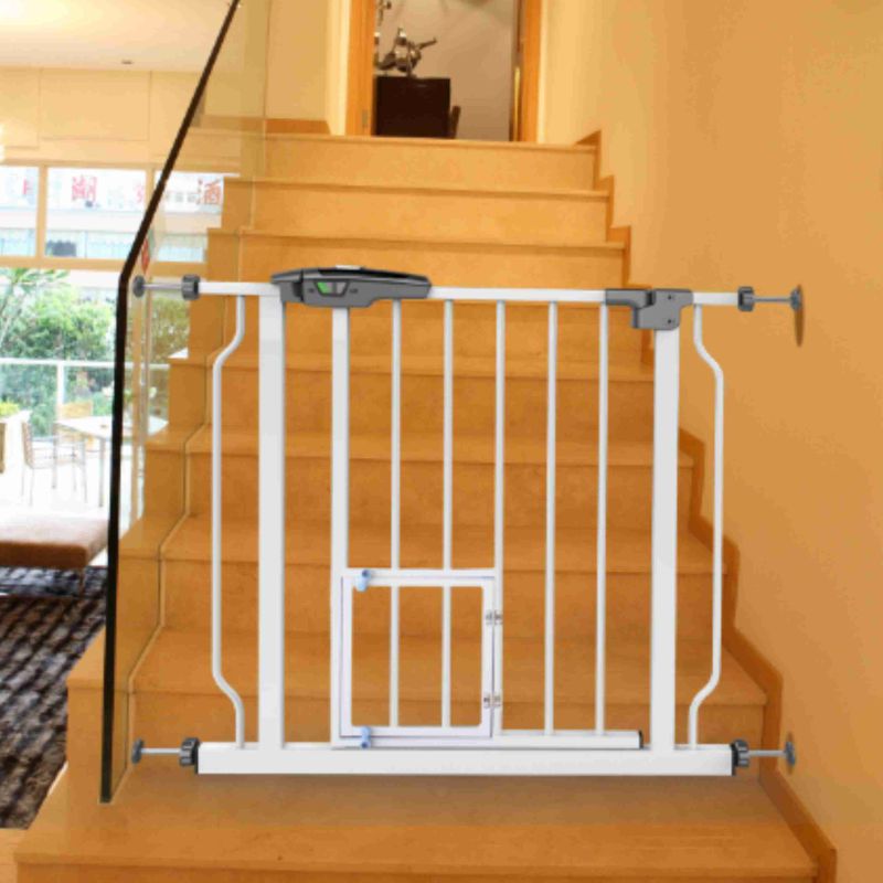 Easy Swing Baby and Pet Gate Stair Barrier With Cat Door