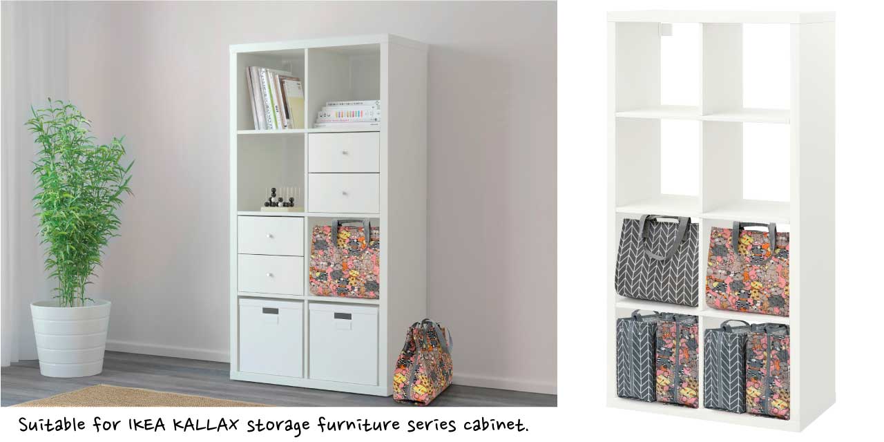 Eco1 is a bag and a mat, it perfectly fits into the IKEA Kallax storage system. Simple transform between storage bin into carrying bag or playmat or tool mat; and verse versa, instantly.