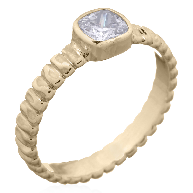 Edgy Textured Shank Silver CZ Bezel Set Ring