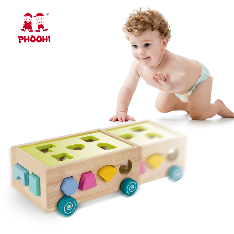 Educational Play Push Car Kids Wooden Shape Sorter Toys for Baby 3+