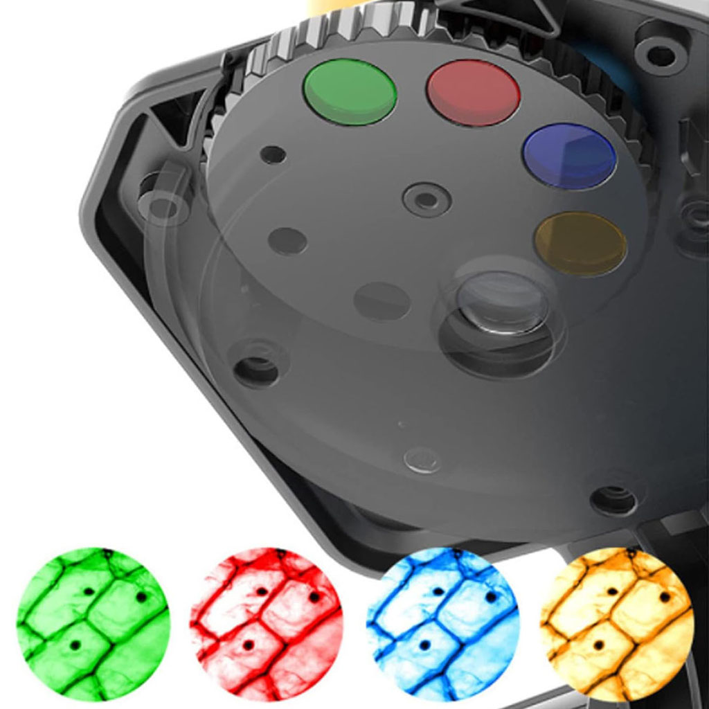 The built-in rotating four-color filter wheel and LED light enhance visual quality and image clarity