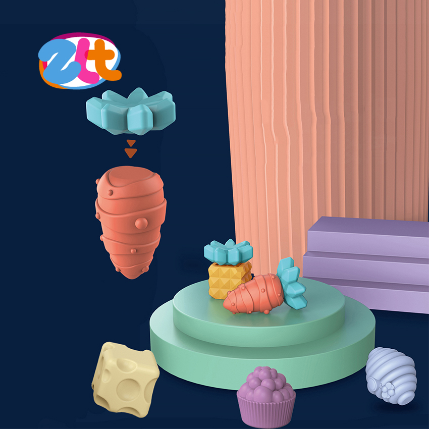 2.soft baby rubber fruits building blocks with cute design, can develop the brain.3.soft baby rubber fruits building blocks don't have burr.