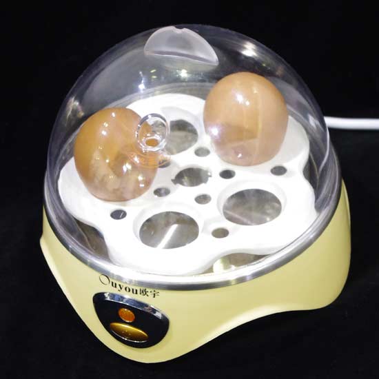 This egg boiler features five egg slots. The arch lid is transparent which allows easy monitoring. The boiler boasts fast egg boiling ability. It makes a convenient kitchen appliance.