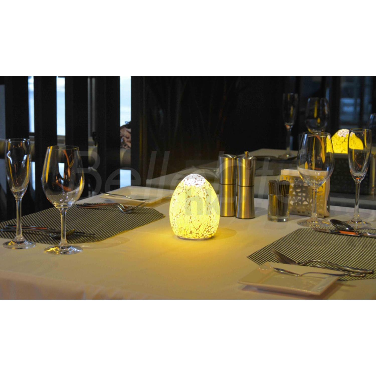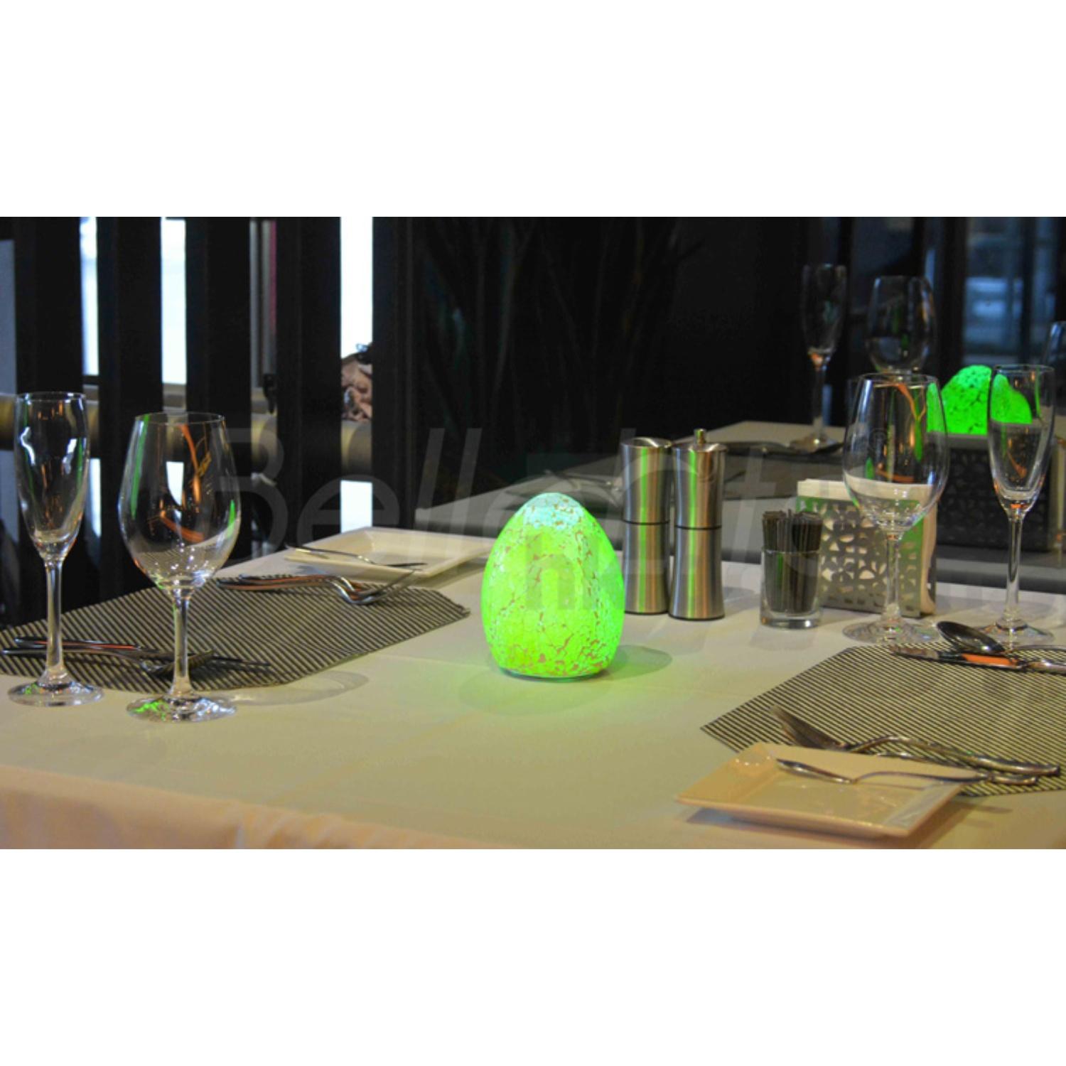 Table lamp flaunting an egg shape with an elegant curvy contour. 1 x 0.5W warm white LED and 1 x 0.5W RGB LED.Rechargeable cordless LED lamp.