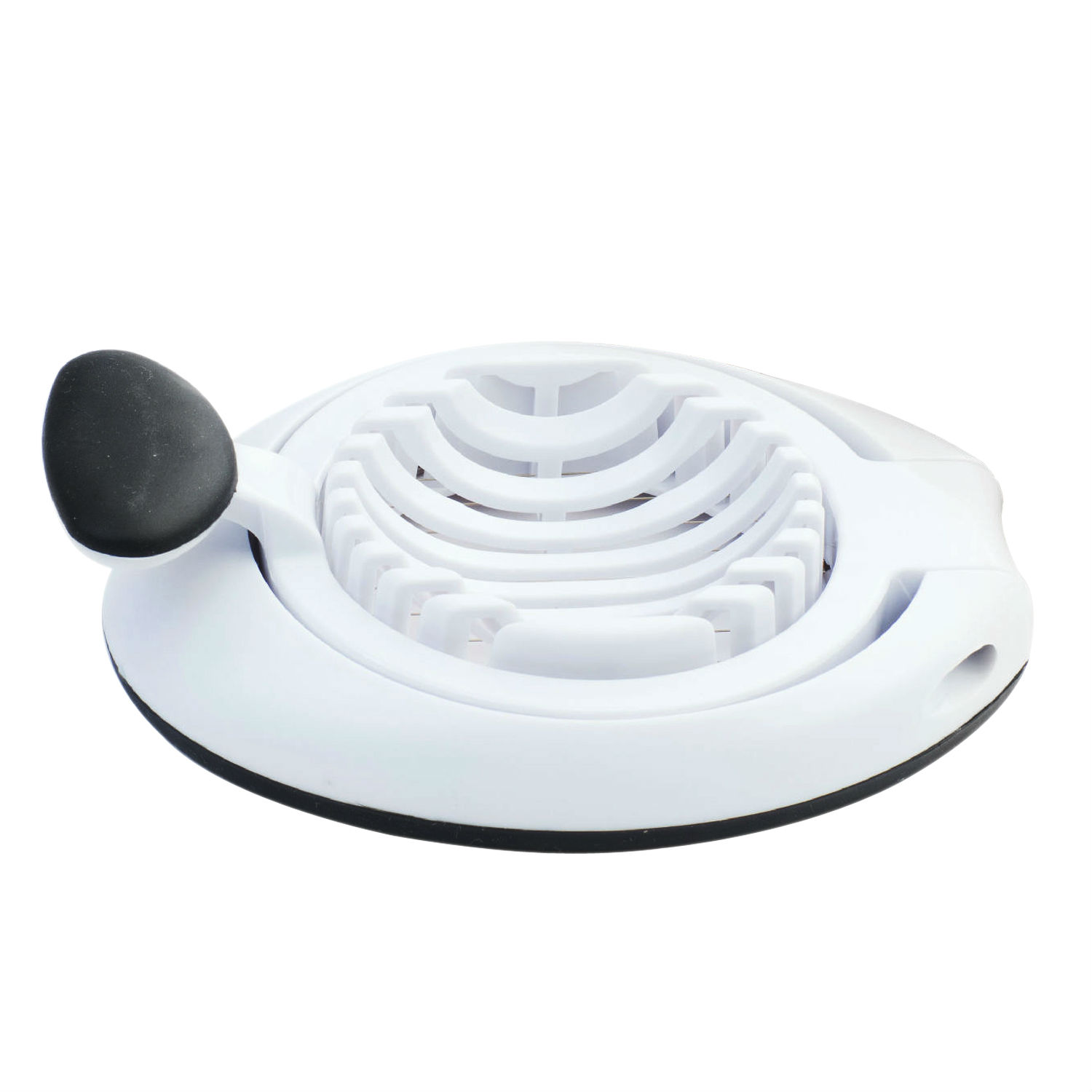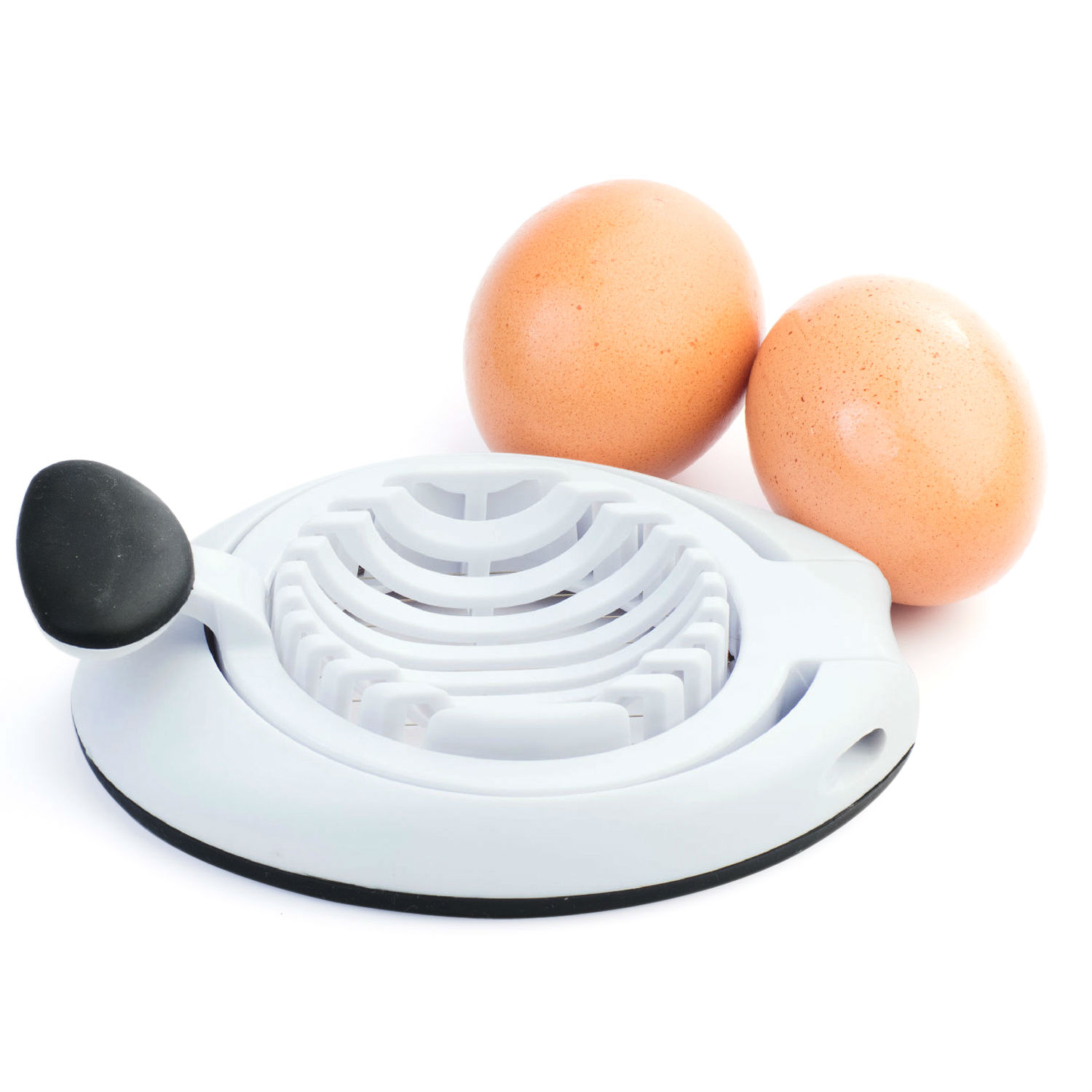 Serve your fresh and juicy seafood salad with nutritious boiled eggs sliced by this round egg slicer! Coming in high quality 18/8 cutting wire, the item boasts durability and easily cuts hard boiled eggs into even, delicious bites. The slicer stands firmly on the countertop with its flat base, while a coated handle is attentively made for easy pressing. Try one and garnish perfectly sliced eggs to any of your dishes.