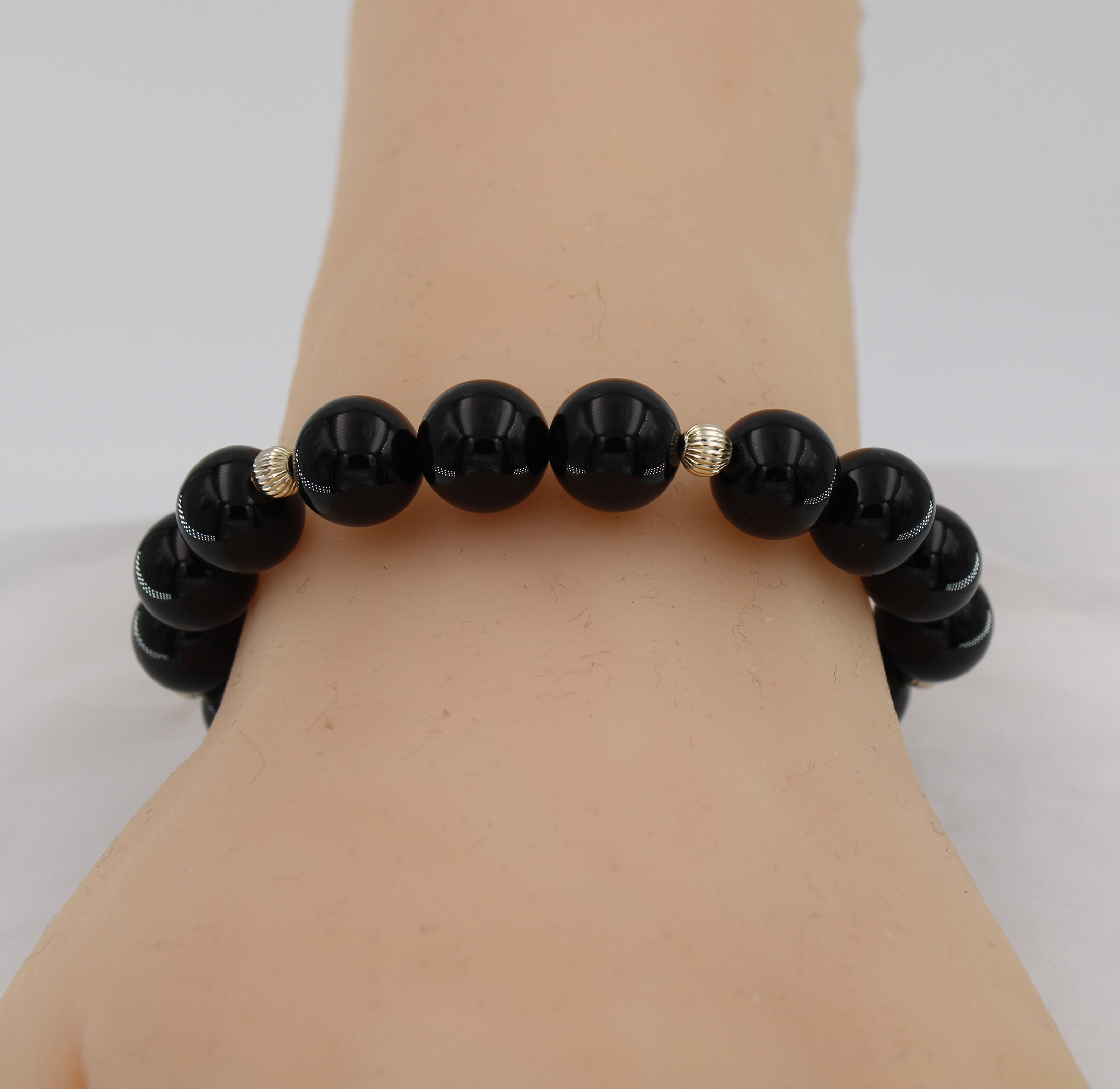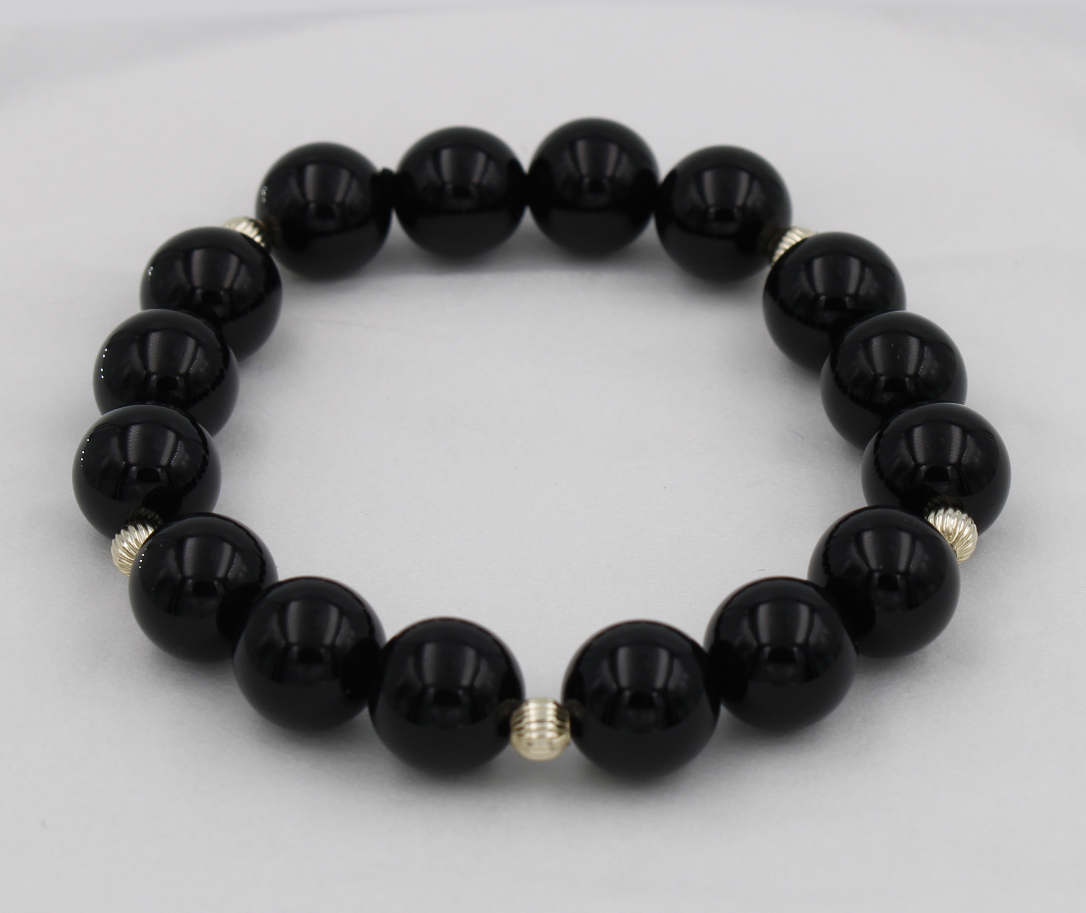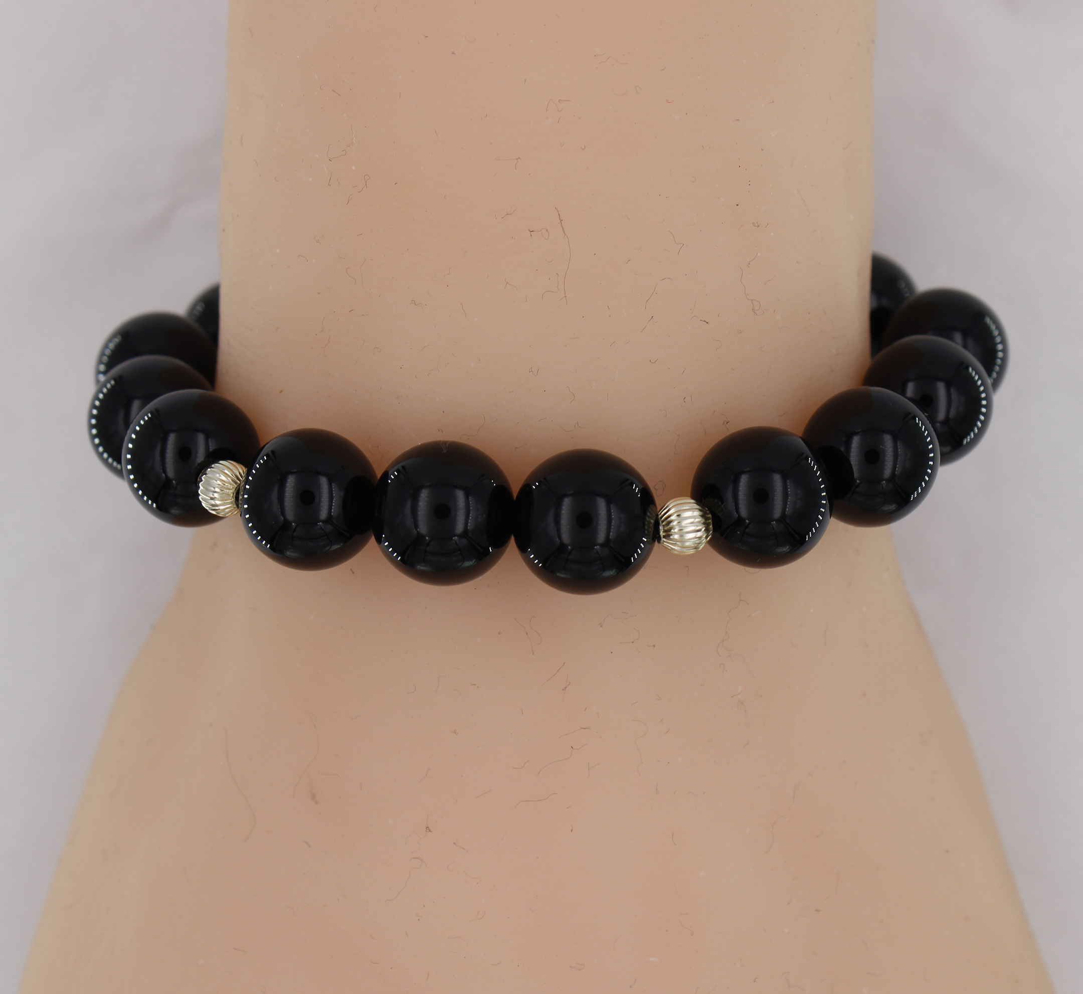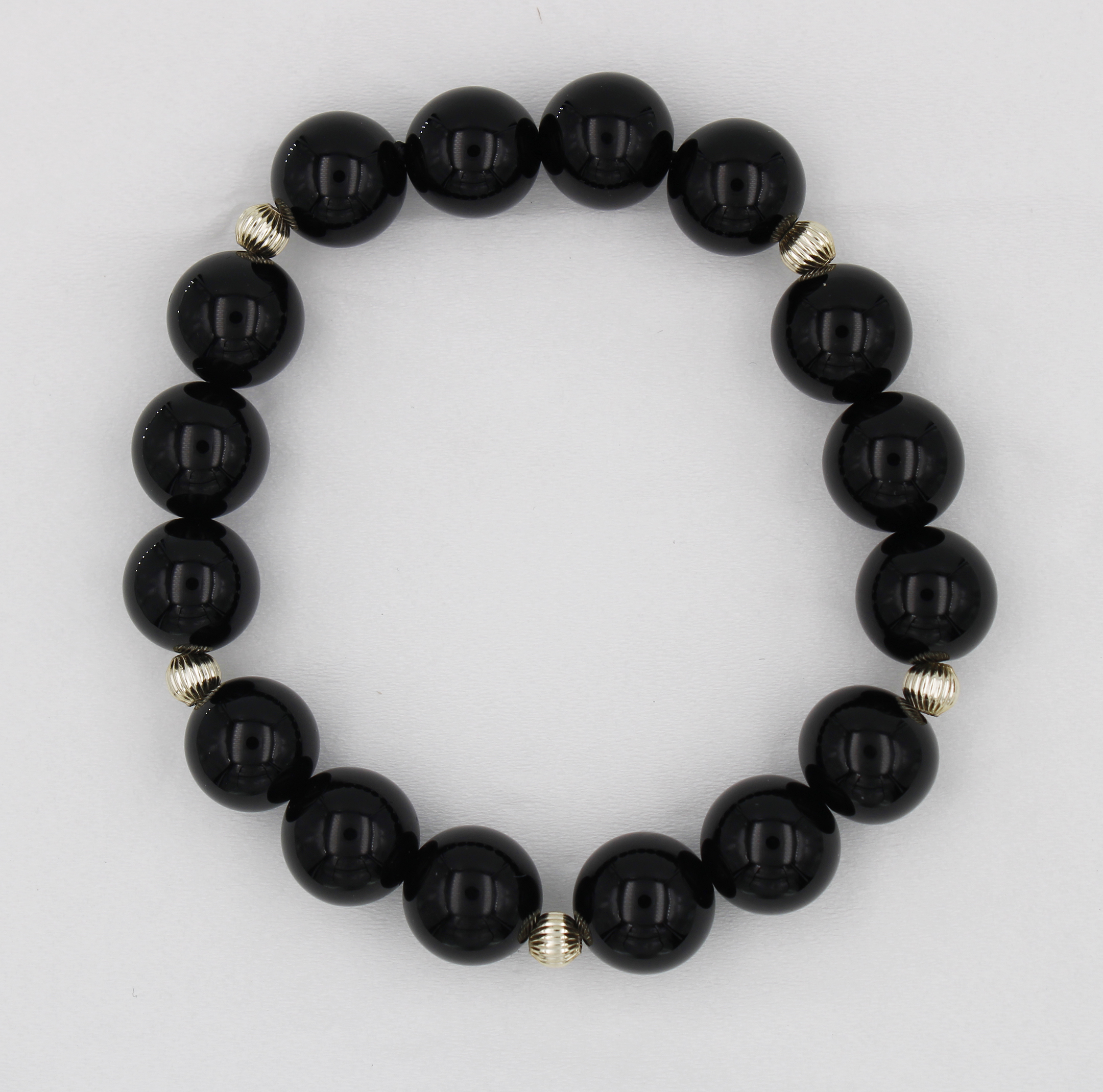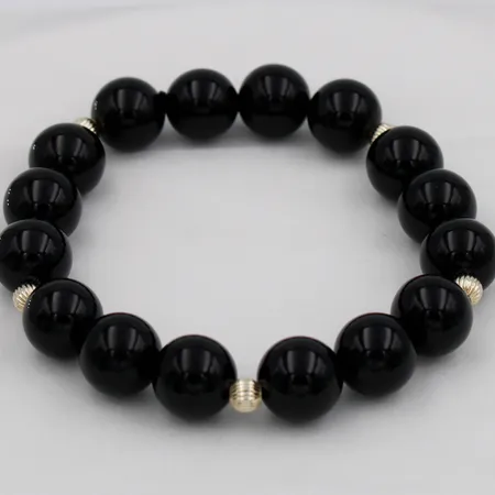 Consisting of 10mm black agate bead (16pc.) & 4mm silver corrugated bead (5pc.) in gold plated.