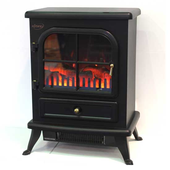The electric fireplace dresses up a room with its modern freestanding design in black. The real log flame effect makes it a decorative piece that warms up a room at the same time. The two heat settings allow you to adjust the flame temperature and brightness with ease. Stay warm in winter with this electric fireplace.