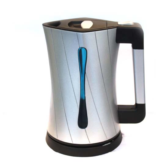 The electric kettle is equipped with a concealed heating element. The double-layer plastic housing offers a cool touch. It comes with a removable filter for easy cleaning.