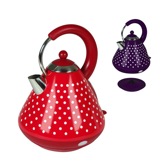 This is an electric kettle with an ergonomic handle for easy carrying. Its body is printed with white dot patterns for added elegance. This kettle comes with 360-degree rotational base which allows you to use it with ease.