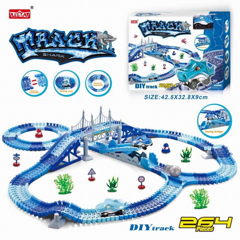 B /O Monster Lights Car Shark Rail Car Set 264PCS