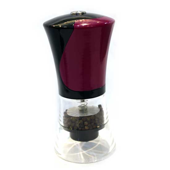 Featured here is an electric pepper mill for convenient use. The classy two-tone finish easily matches any modern dining table decor. This electric pepper mill can also be operated manually.