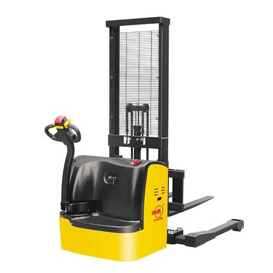This electric straddle stacker is equipped with an advanced AC control system and a regenerative brake system. It comes with a multi-functional display with a BDI function, a fault code, etc. The auto deceleration system utilizes regenerative braking. It features a built-in pressure relief valve, protecting the trucks from overloads. It is designed with a lifting limit switch to shut off pump motor at the maximum lifting height. The standing drive motor system has a small turning radius. The motor structure is waterproof and dust-proof. The CANbus technology reduces wiring complexity and increase reliability. It also features a sideway battery with a rollout system, allowing easy and convenient replacement.