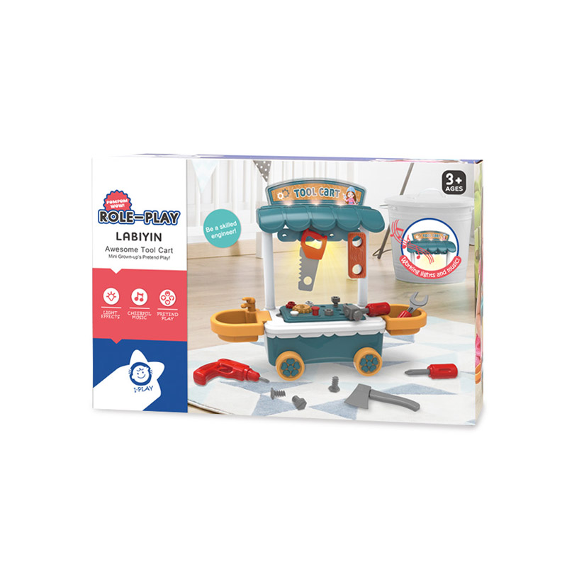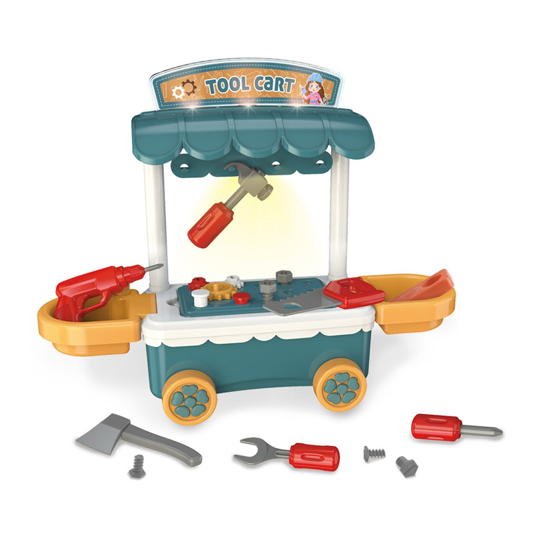 • A tool cart toy set for pretend play.