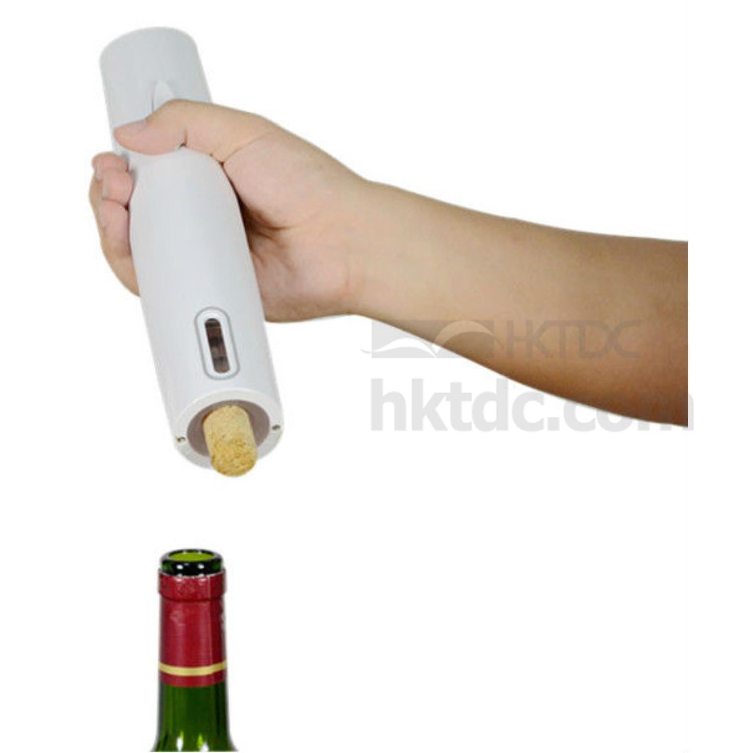 Opener powered by 4AA batteries. visual uncorking process.