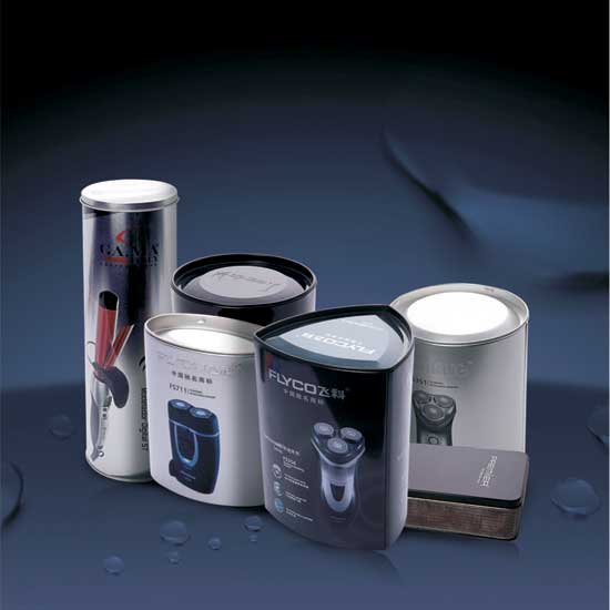 Pictured are packaging boxes made with tin. The tin compositions are low-cost, durable and acid-resistant. Printing and embossing details can be made on the boxes for promotional purposes.