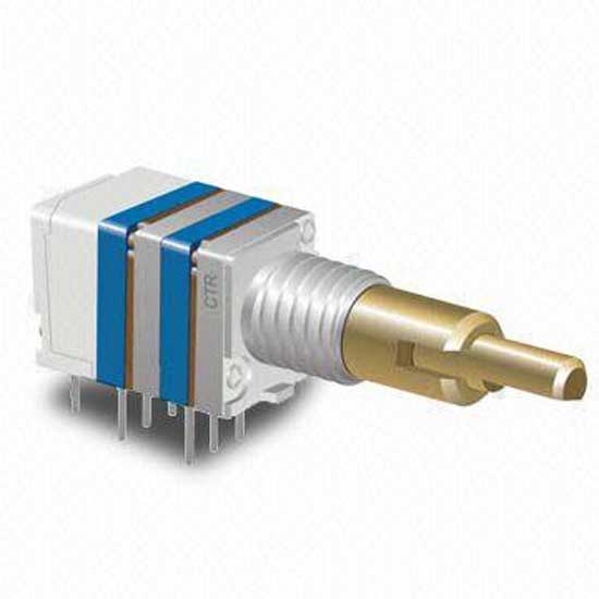 Displayed is an electrical encoder that is designed to convert electrical code and signal. The built-in rotational stopper offers great endurance and exceptional durability. Enhance the stability and reliability of different types of electrical appliances with this encoder.
