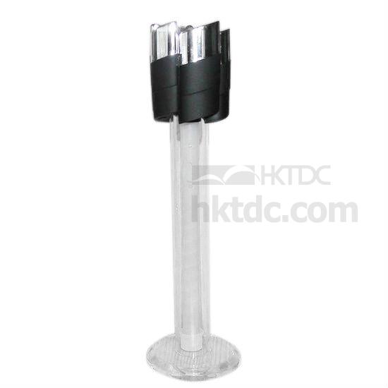 This holder is designed to accommodate an electronic wine aerator. The clear, upright design is pleasant and modern. It serves to keep the tool clean and dry when not in use.