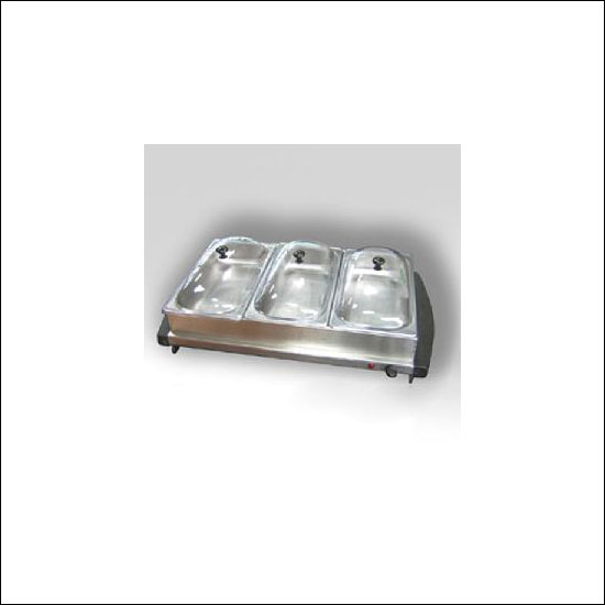 It is a 3-trays buffet server with stainless steel housing