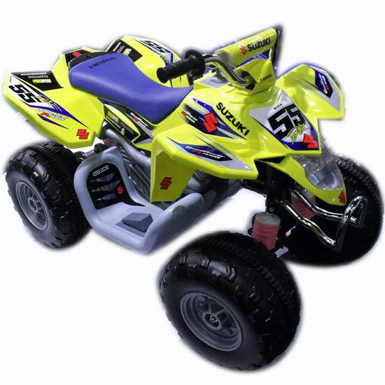 This speedy electronic four-wheel ride-on car has an easy-handle pedal switch accelerator. The 3ATV-simulated sounds create a realistic riding experience for adventurous children.