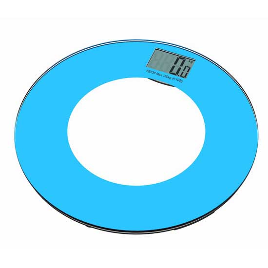 Displayed here is a fancy electronic health scale designed in a circular shape. This accurate scale allows you to closely monitor your body weight. Simply tap this scale with your foot to switch it on.