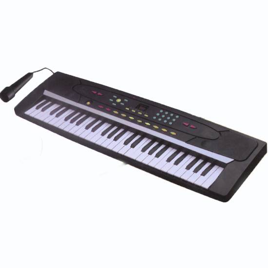 This is an electronic keyboard with 54 standard keys. It comes with 100 timbres and 100 built-in rhythms. Coming with a microphone and two high-quality loud speakers, this keyboard makes an ideal musical toy for kids.