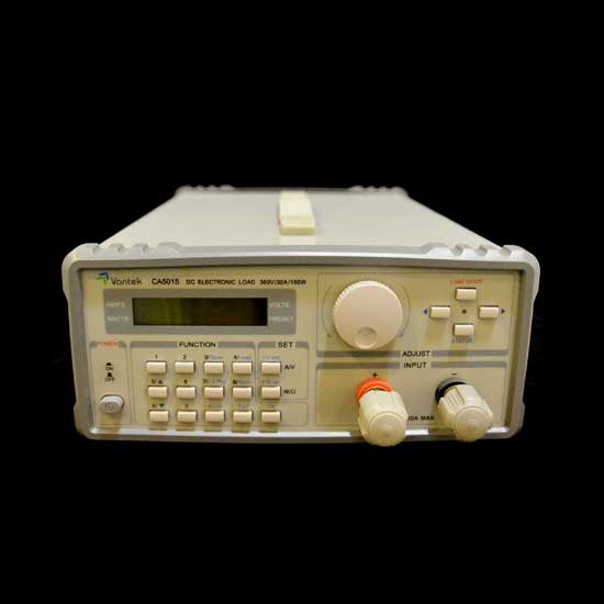 Displayed is an electronic load that comes with a user-friendly control panel with multiple buttons. Made professionally, this electronic load can test voltage and current levels accurately. This easy-to-use electronic load is a good choice for schools.