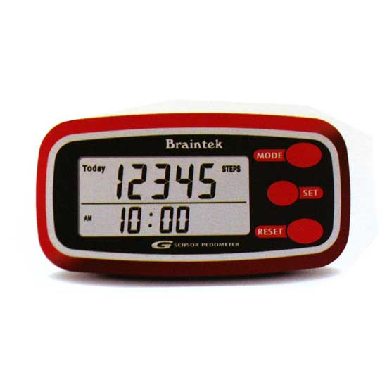 This electronic pedometer showcases a reliable design that accurately counts the amount of calories burned, the number of steps taken and the distance traveled. With only a few buttons, this pedometer promises easy control. Keep track of your training progress with this pedometer.