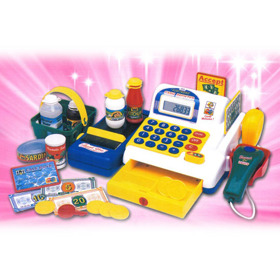 This toy register set helps children learn how to do simple transactions. The set includes an electronic cashier, toy money, toy goods and more. The colorful toy set will surely delight your kid.