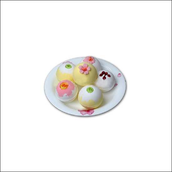 The soap on top of the bath fizzle ball was designed as flowers in colours such as pink, green etc.