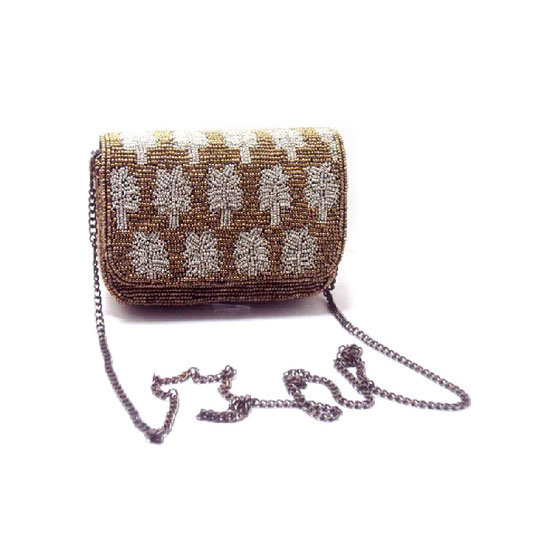 Bold, bright and beautiful, this clutch is sure to win you compliments! It comes with glossy beads in vibrant hues on the front and glossy gold beads on the back. The exquisite chain completes this design for a perfect finish.