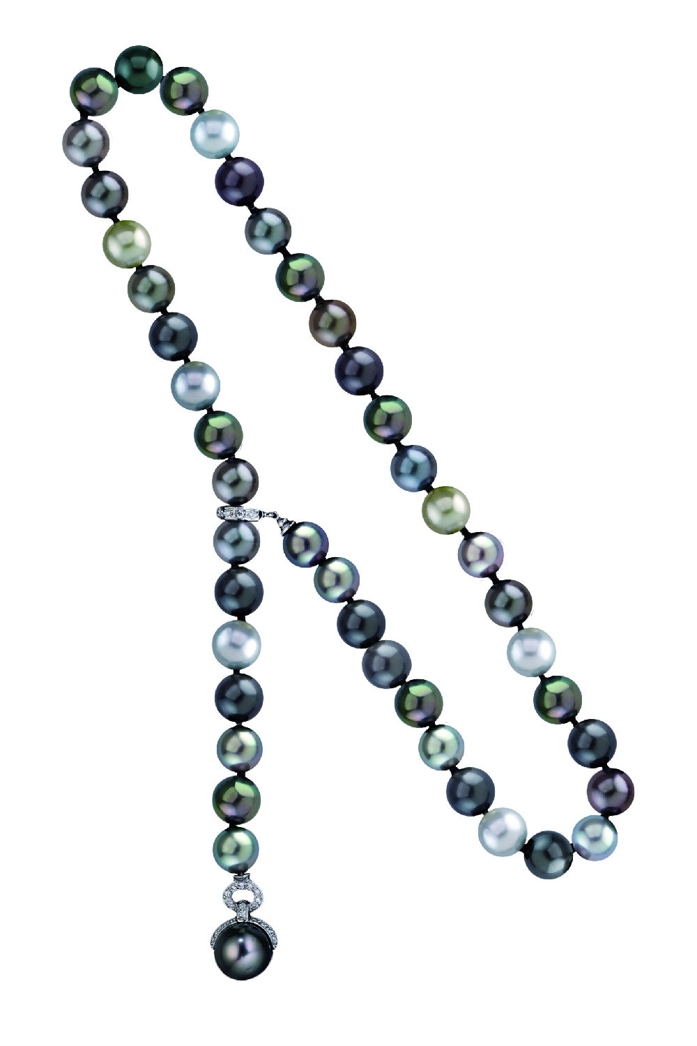 White gold necklace, 9/10mm and 11/12mm Tahiti pearls, 26 diamonds 0.25 ct