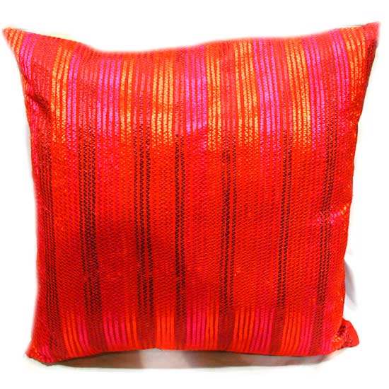 This embroidered cushion features a metallic color tone. It is nicely adorned with hand embroidered stripe patterns with zig-zag details. This luxurious cushion makes an exotic household item.