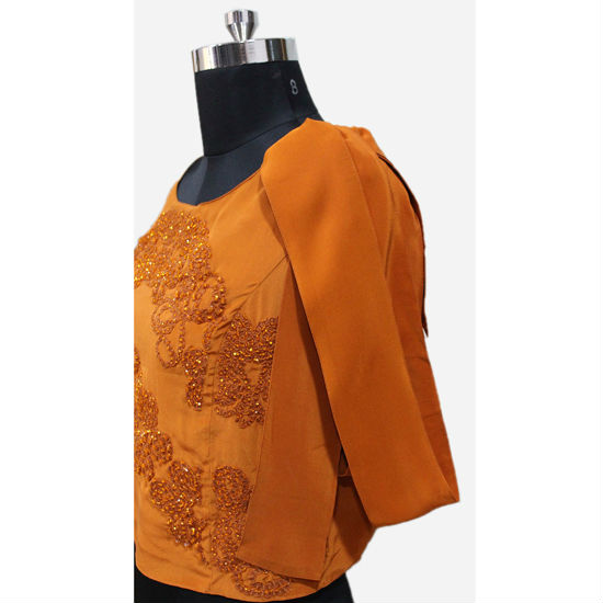 short top, first embroidered by computer and then touched up by hand using 2 cuts beads.