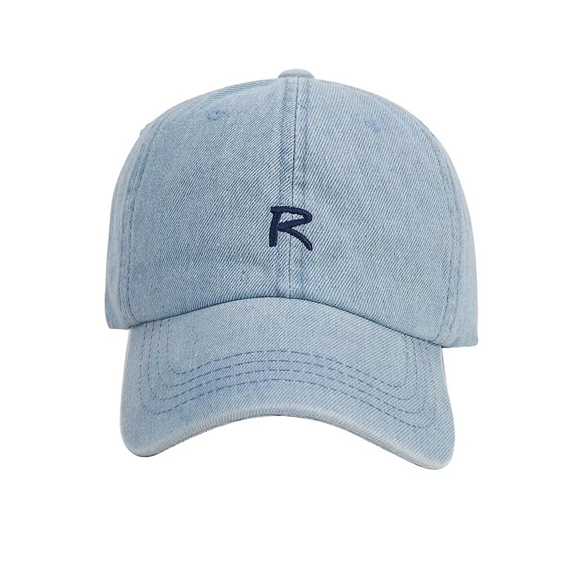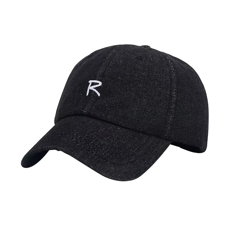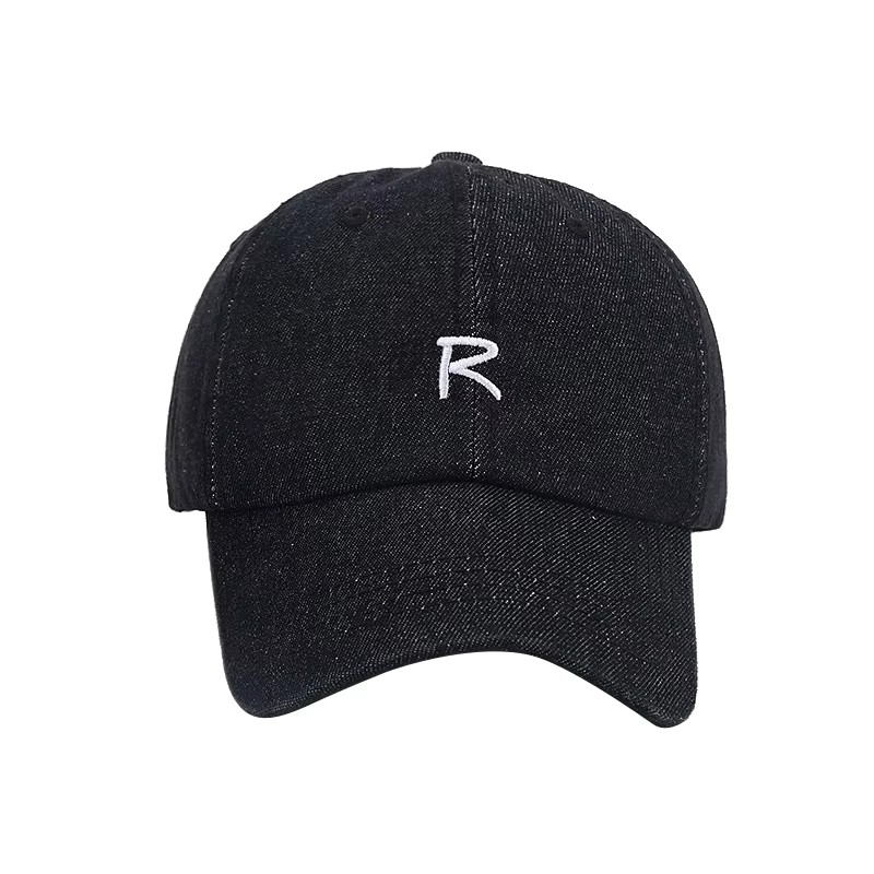 Denim Baseball Cap with Embroidered "R" Logo