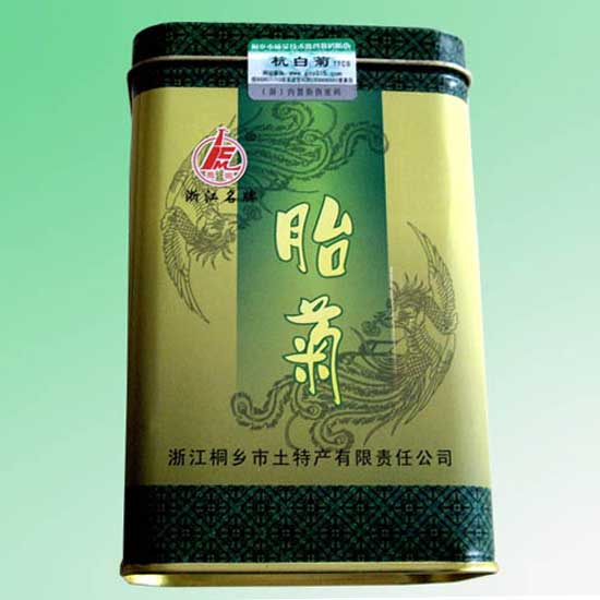 This embryo chrysanthemum tea is packaged in a rectangular iron tin box for easy storage. It adopts first-rate Hangzhou white chrysanthemums and is processed under strict quality control. This delicious and aromatic embryo chrysanthemum tea is an excellent choice for office workers.