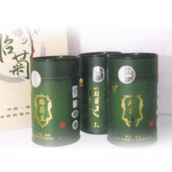 This displayed tea adopts high-standard chrysanthemums that are known as “the king of embryo chrysanthemums”. It is packaged in a green cylindrical canister for easy storage. This fragrant chrysanthemum tea is great for people who use a computer for a long time.
